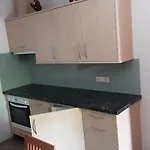 Este apartamento ofrece una cocina completa con servicio de tetera/cafetera, cafetera, nevera y un horno.